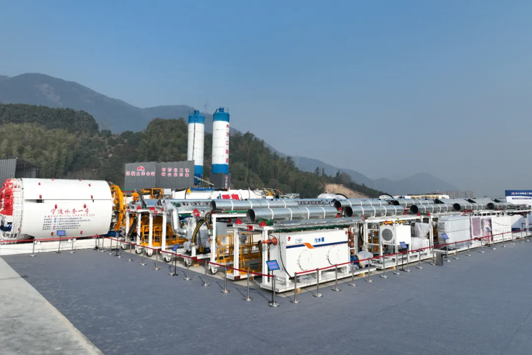 作為省、市重點工程建設項目,寧波市水庫群東西線聯通工程位于寧波市奉化區(qū)南部山區(qū),工程設計輸水規(guī)模為40萬m³/d。建設內容包括一條干線、兩條支線,以及沿線調節(jié)站及各類閥井,全線總長約40.54km。6#隧洞作為本工程重要節(jié)點性分部工程,全長約12.28km,采用鉆爆法+TBM(全斷面硬巖掘進機)進行隧洞開挖。值得一提的是,本次所采用的敞開式TBM設備“寧波水務一號”,其開挖直徑4.03米,整機長度約225米,掘進長度10.87km,為寧波水利行業(yè)首次應用。