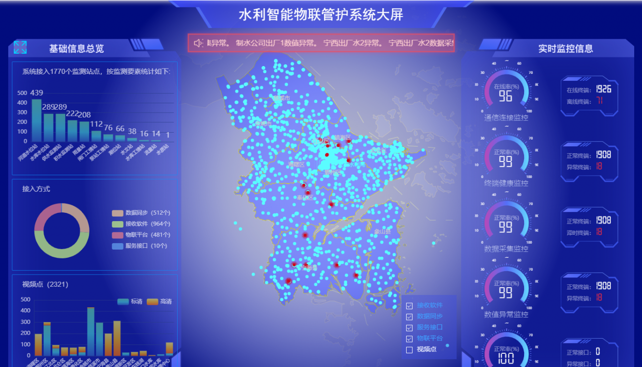 智慧水利物聯(lián)管護平臺,對水利各部門、各廠商、各類型監(jiān)測設(shè)備的,健康狀態(tài)與數(shù)據(jù)傳輸?shù)冗M行統(tǒng)一管理,實現(xiàn)水利要素實時“感知-互聯(lián)”,強化水利物聯(lián)感知監(jiān)管,為智慧水利建設(shè)提供基礎(chǔ)支撐。