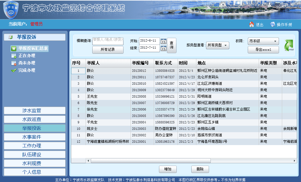 運用當前流行的Javascript和HTML5開發(fā)技術,遵從簡約、適用、高效及專業(yè)的原則,運用優(yōu)秀合理的系統(tǒng)架構以及通用化定制化的產品設計模式,著力于水行政執(zhí)法管理的現狀和水政監(jiān)察隊伍的工作需求,開發(fā)水政監(jiān)察綜合管理系統(tǒng),實現水政執(zhí)法工作的信息化與網絡化,實現水政監(jiān)察信息的交換與共享,提高水政執(zhí)法管理水平,提高工作效率與信息的共享程度。