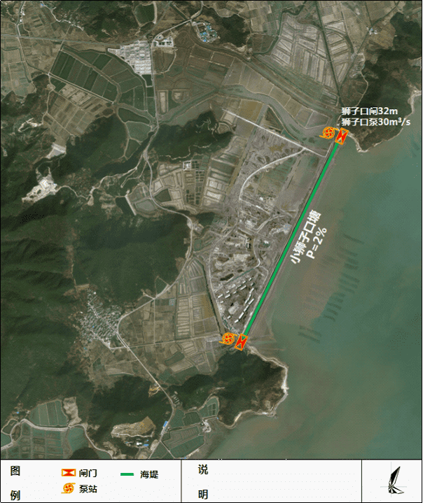 松岙鎮(zhèn)小獅子口區(qū)塊位于松岙鎮(zhèn)最東端,坐北朝南面海依山。本次小獅子口海塘安瀾工程主要包括拆除老閘新建獅子閘站和1.893公里海塘提標加固工程。其中,閘站工程包括泵站設計流量為30m3/s,水閘規(guī)模為6孔×5.5m,凈寬33m;海塘工程包括小獅子口塘提標加固至50年一遇標準。
