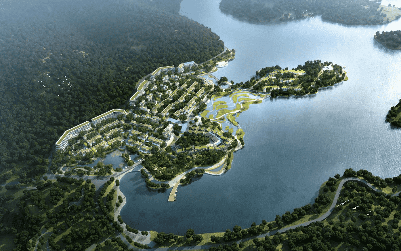 鎮(zhèn)海十字路地塊項目位于寧波市鎮(zhèn)海區(qū)九龍湖鎮(zhèn),十字路水庫西北側(cè)、九龍山東南側(cè)(原十字路村的位置)。本項目建成可延續(xù)水庫兩岸湖面,打造九龍湖生態(tài)活力景觀帶,聯(lián)通九龍湖片區(qū)重點(diǎn)活力空間,帶動區(qū)域經(jīng)濟(jì)發(fā)展;通過酒店及配套設(shè)施打造多功能、多體驗與多生態(tài)并存的濱水旅居綜合體,助力九龍湖區(qū)域升級;項目建設(shè)充分尊重原有的地貌環(huán)境,打造與自然融為一體、生態(tài)豐富多樣的湖景活力社區(qū),提升九龍湖風(fēng)景區(qū)在寧波的影響力。