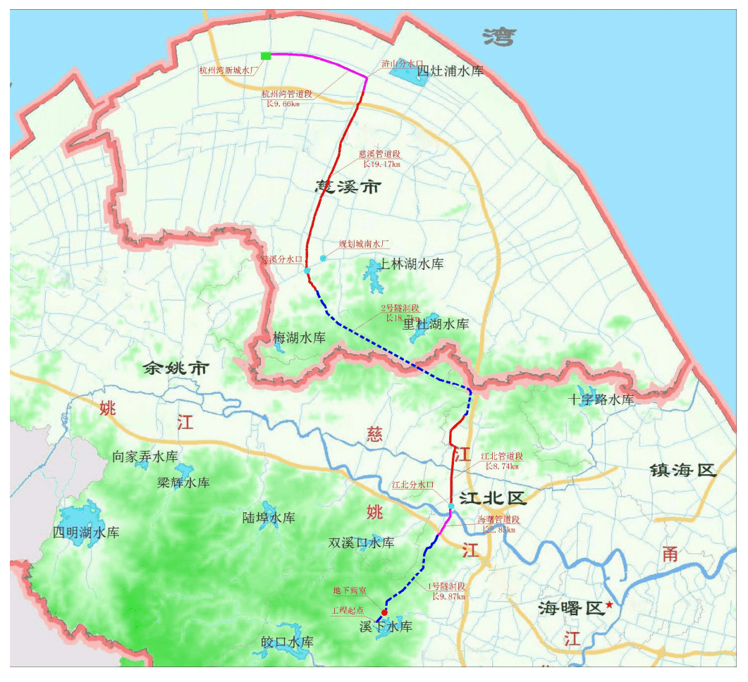通過本工程的建設可實現(xiàn)寧波向慈溪市補充優(yōu)質原水1500萬m3/a,向杭州灣新區(qū)補充優(yōu)質原水2000萬m3/a,以減輕未來慈溪市和杭州灣新區(qū)優(yōu)質水用水壓力,填補2020水平年的優(yōu)質水需水缺口、補充2030水平年的部分優(yōu)質水需水缺口。