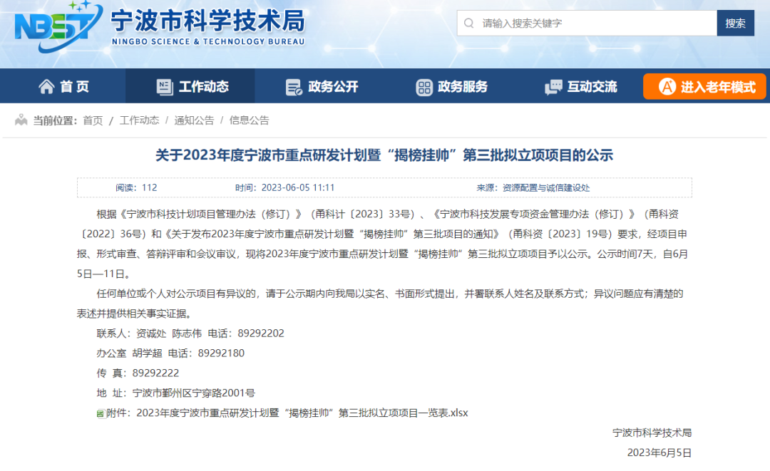 喜報(bào) | 我院又一項(xiàng)目入選2023年度寧波市重點(diǎn)研發(fā)計(jì)劃!