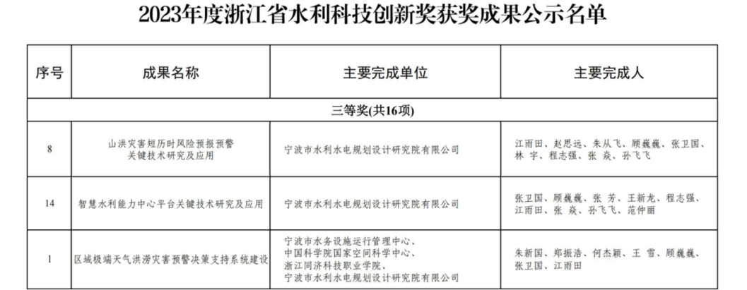 喜報 | 我院3項成果榮獲2023年度浙江省水利科技創(chuàng)新獎!
