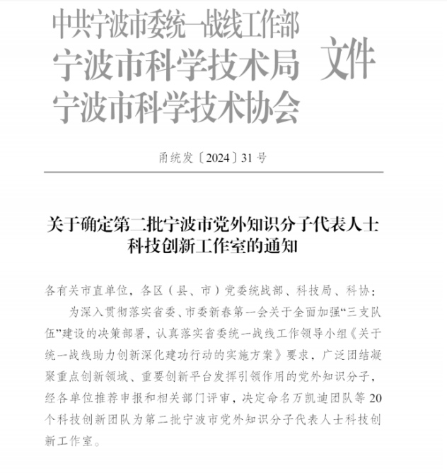 我院張預(yù)定創(chuàng)新工作室榮膺 “寧波市黨外知識(shí)分子科技創(chuàng)新工作室”