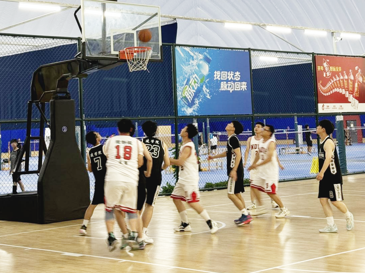 開幕式后,由四支隊伍首先拉開比賽序幕,分別是規(guī)劃院VS建設(shè)管理院,勘察院VS行政智慧院聯(lián)隊。隨著一聲哨響,規(guī)劃院、建設(shè)管理院的兩支隊伍拉開首場對決。一開場,雙方迅速進入狀態(tài)。規(guī)劃院隊率先爭奪籃板,順利得分。建設(shè)管理院隊不甘示弱,連攻帶守,幾度猛攻。雙方比分你追我趕,奮起直追。觀眾吶喊此起彼伏,氣氛熱烈。最終,建設(shè)管理院隊穩(wěn)定發(fā)揮、密切配合,以13分的優(yōu)勢打敗規(guī)劃院隊,以37:24的最終成績拿下首場比賽的勝利。