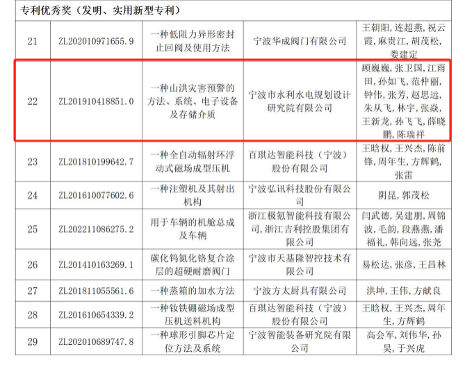 近日,寧波市市場監(jiān)督管理局公布了第三屆寧波市專利創(chuàng)新大賽獲獎項目名單,我院提交參賽的發(fā)明專利“一種山洪災害預警的方法、系統(tǒng)、電子設(shè)備及存儲介質(zhì)”榜上有名,獲得本次大賽的“專利優(yōu)秀獎(發(fā)明、實用新型專利)”。