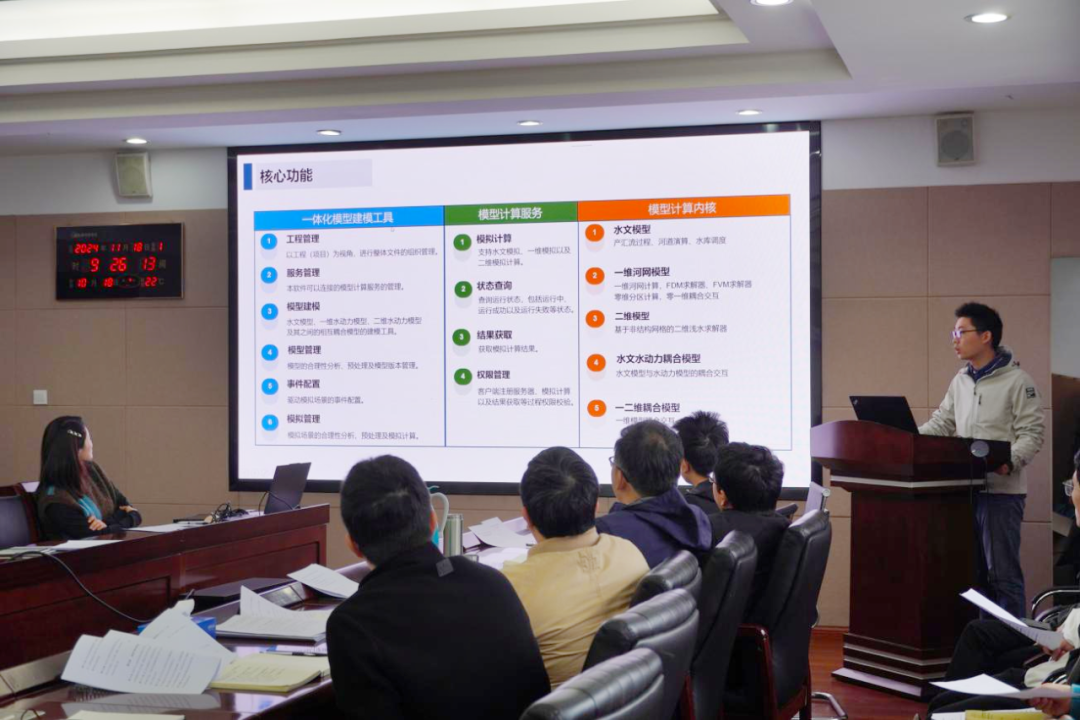 介紹結束后,參會人員針對該平臺的核心功能和實操應用進行熱烈交流。大家一致認為,該平臺是目前我院自主研發(fā)的通用化、模塊化、精細化的水文水動力數(shù)學模型及配套分析工具的集大成者,能夠實現(xiàn)對流域水情的實時模擬和精準預測,能夠為防洪調度、水資源管理等水利治理管理工作提供兼具前瞻性、科學性、精準性、安全性的決策支撐。
