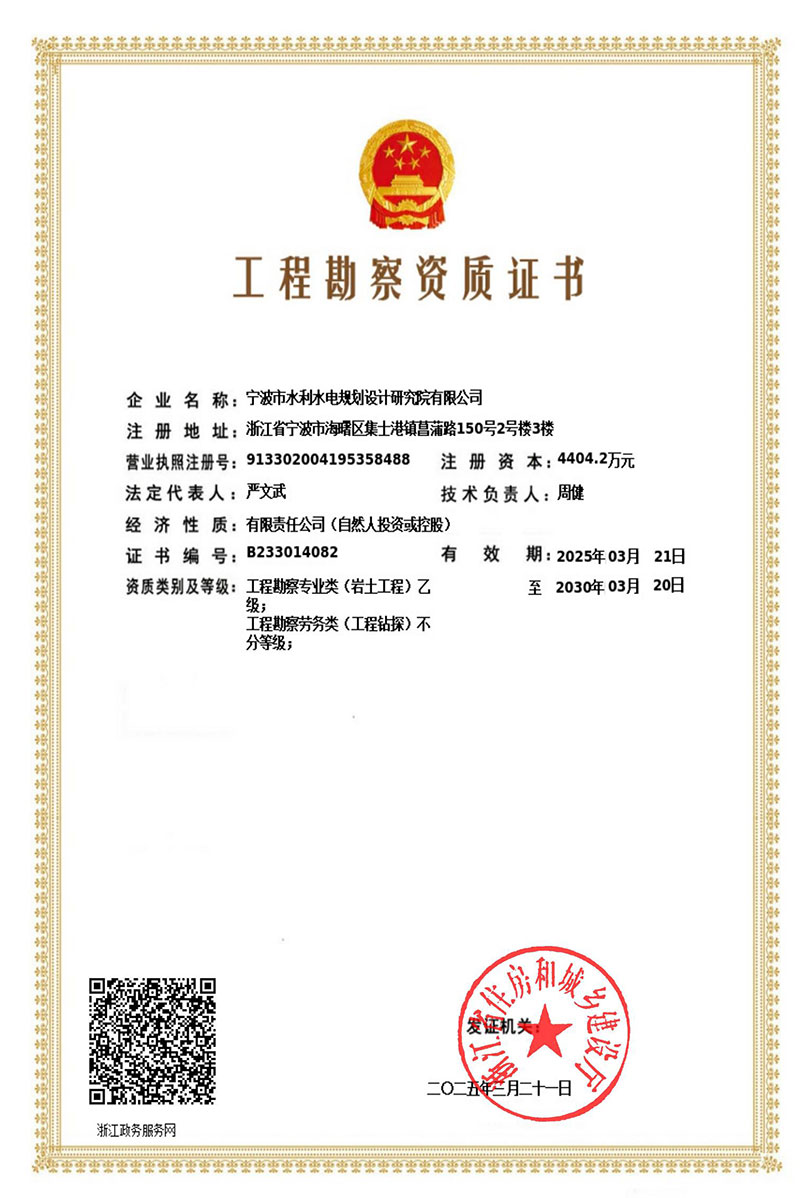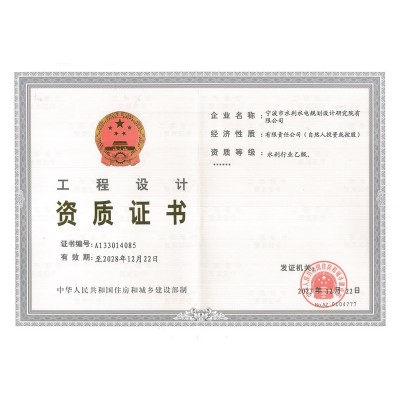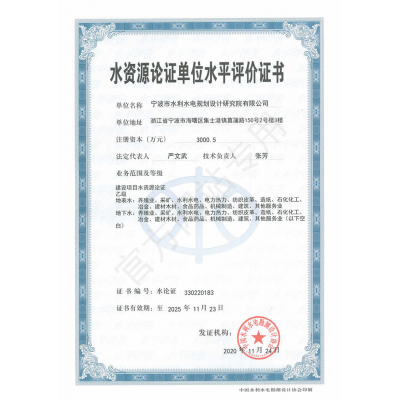 寧波院具有水利水電工程設(shè)計(jì)、工程勘察、工程咨詢、水土保持、水資源論證等多項(xiàng)資質(zhì)。承擔(dān)中小河流域規(guī)劃、水庫(kù)、河道整治、灘涂圍墾等工程的勘察、設(shè)計(jì)、咨詢、總承包業(yè)務(wù),以及各領(lǐng)域建設(shè)項(xiàng)目的防洪評(píng)價(jià)、水資源論證、水土保持方案編制、水土保持監(jiān)測(cè)、計(jì)算機(jī)行業(yè)CMMI 3級(jí)認(rèn)證、知識(shí)產(chǎn)權(quán)管理體系認(rèn)證等。